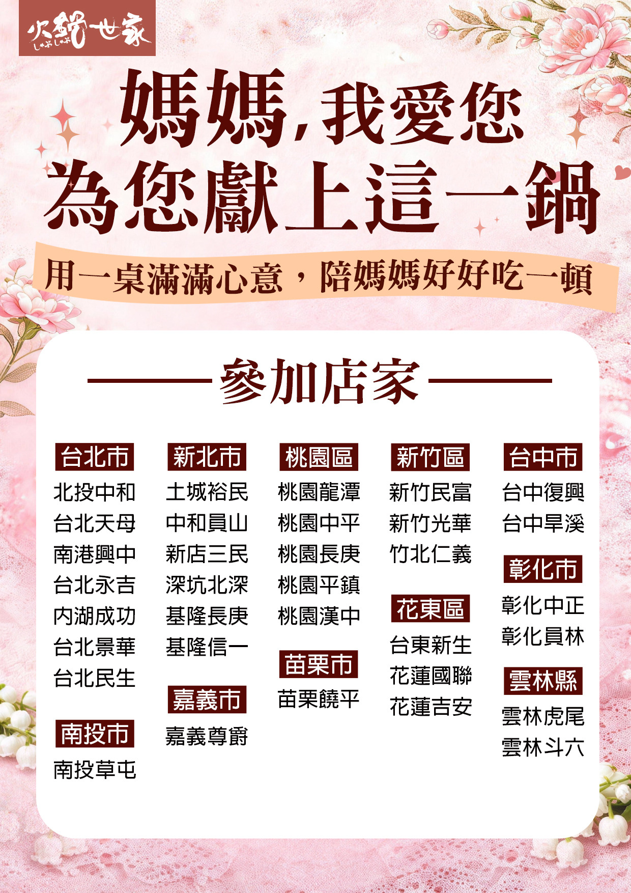趁著母親節,帶辛苦的媽媽來火鍋世家,享受一場暖心又暖胃的海陸盛宴吧!
