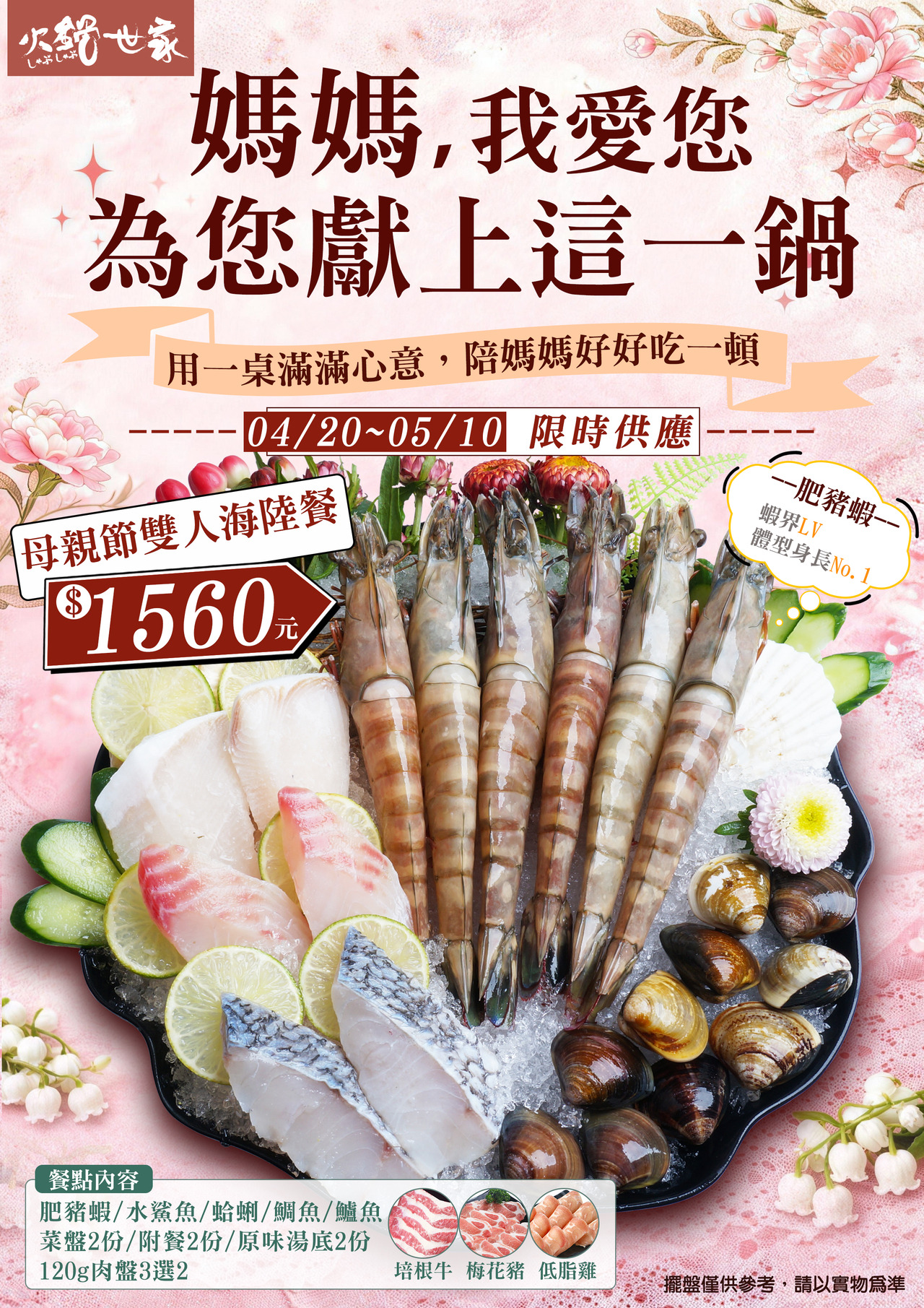 火鍋世家 誠摯推出---【母親節雙人海陸餐】